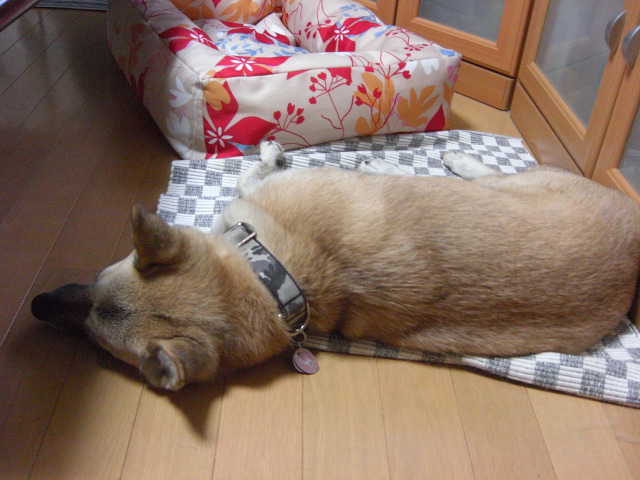 おつかれ、そらちゃん。(何故か奥のベッドでは寝ずに手前のマットで寝てます)
