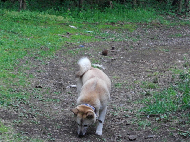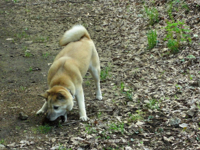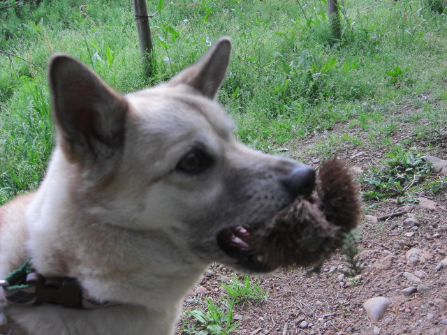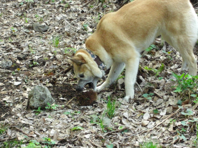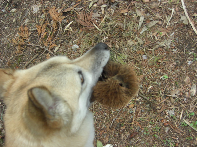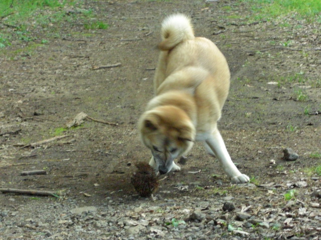 このイガグリを森の入り口付近で拾い、結構長いこと咥えていましたが途中チッコする時に離してしまいまた咥えて歩こうとして面白いことになりました!!