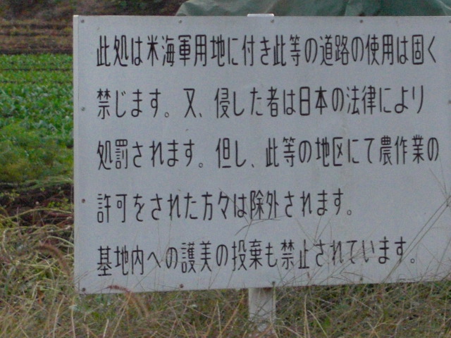 歩きながら撮ったのでブレてますが、米基地の入り口です。