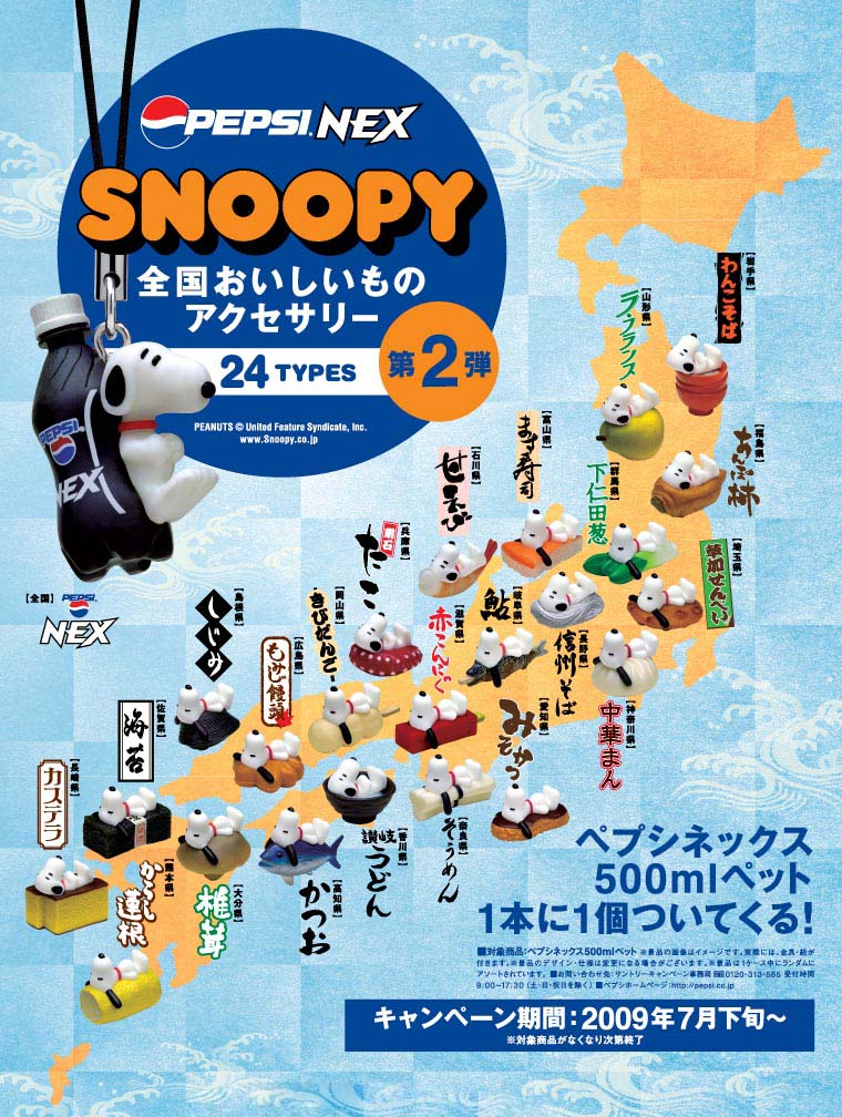 もうスヌーピーシリーズはペプシでは何回もやっているので売れるのは確実!となっているようで、前回のは全国うまいもの~と言いつつ半分の県のしかなかったんでやる気マンマンだったみたいです(笑)