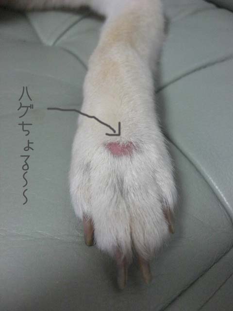 今月あたまに左前足にハゲができてしまったのだけれど(ニスのようなものが付着してどうやって取ろうか思案していたら自分でゴソっと抜いてしまった模様)