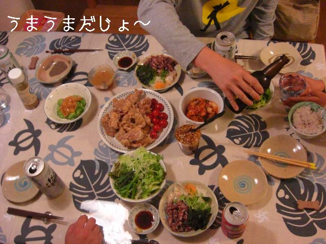 だいずパパさんとくまは昼間っからビールで乾杯しとりましたよ(-_-;)
