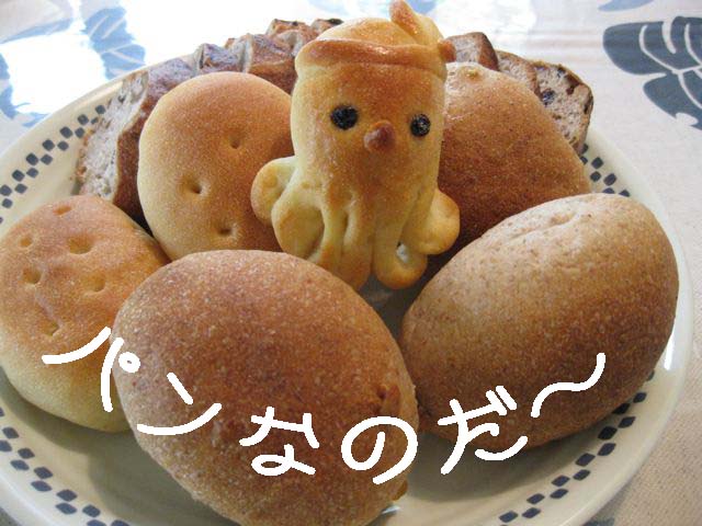 真ん中のたこさんパンはお店の人のご好意でちけぽが頂いたもの。