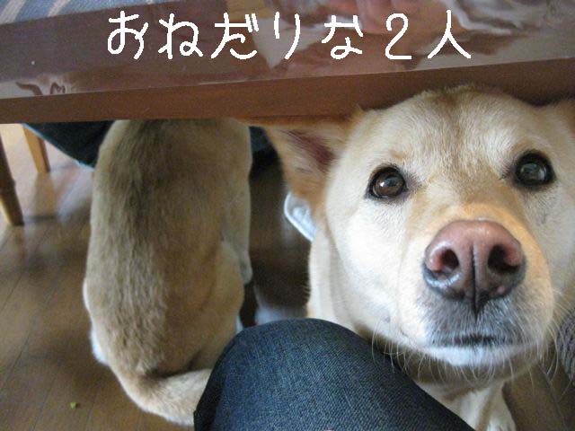 だいずくんとそらはワタシ達の足元で地味~にパン待ち(笑)