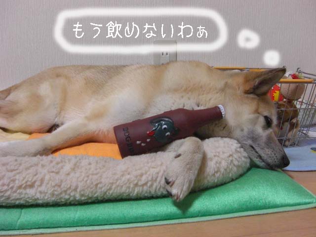 その後はだいずママちゃんに頂いたワンコビールを片手におねむちゃん( ̄m ̄〃