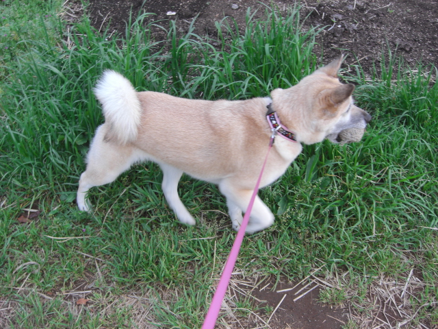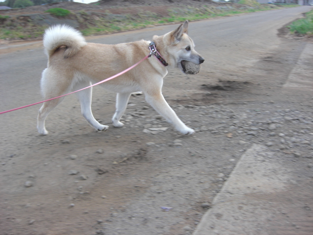 畑地帯のメインストリートでも他のワンコに自慢するかのように得意気。。