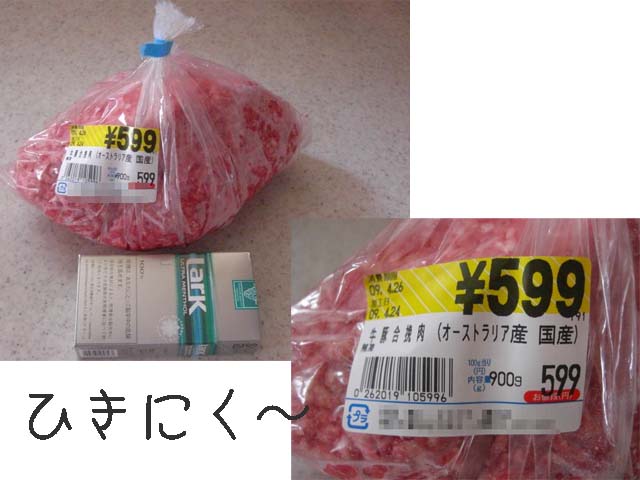 しかも、グラム66円くらい。とても安いのでひき肉大量消費のご家庭推奨です(爆)
