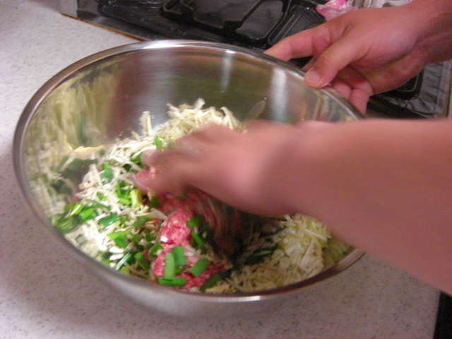 ここからはくまに任せてみました。(ってか餃子をやるときはなぜか張り切っているので任せておく)