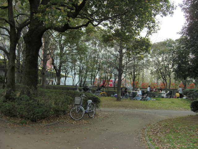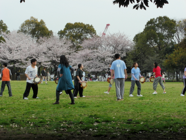 公園内は花見客でレジャーシートを敷いて宴会する人、本格的に椅子・テーブルなどを出してBBQなどをする人々でいっぱいでした。
