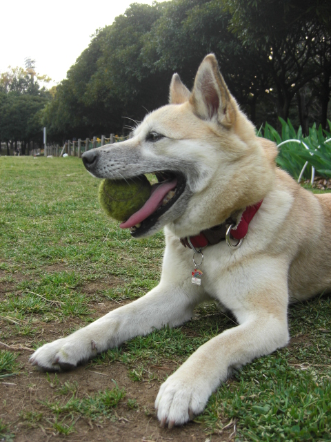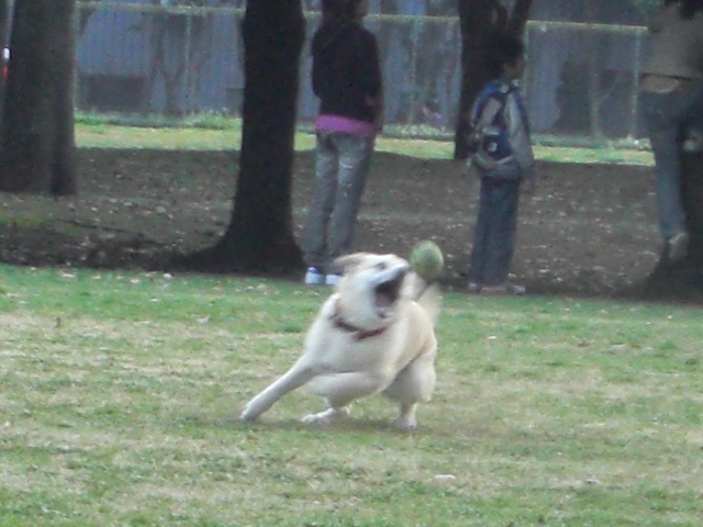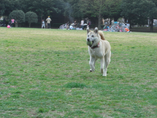 こんなんじゃボール投げもクソもないので仕方なく公園一周の旅になりました。