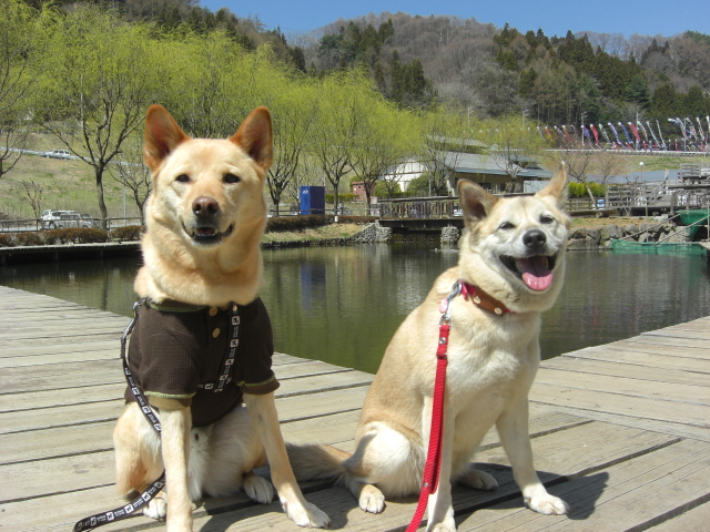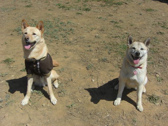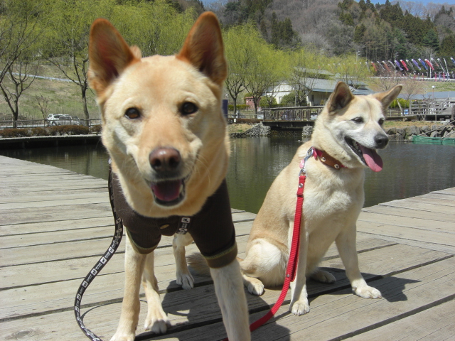 この日はかなり暑くて2ワンともそんなに走ってくれなかったので2ショット写真を撮ってランを後に。。
