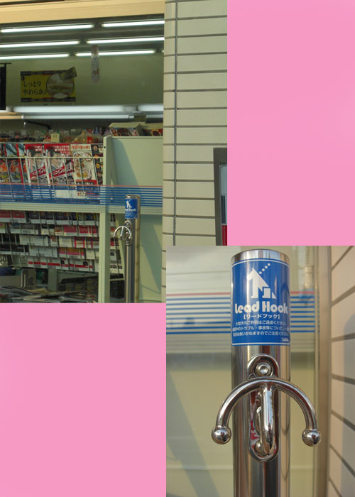 入り口から離れた場所にワンコ用のリードフックがありました。