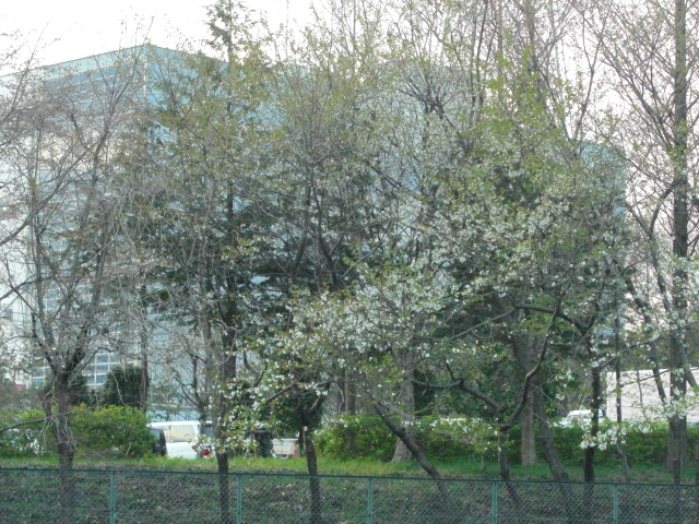 裏の会社敷地内の桜の木。遠くから見ても全然分からん!