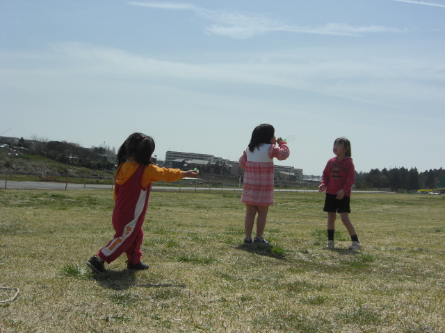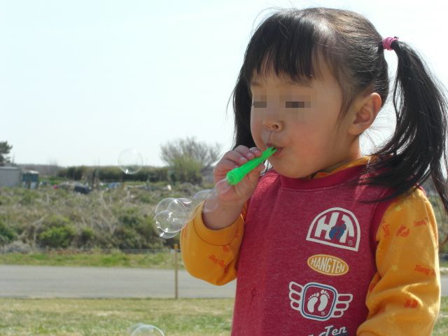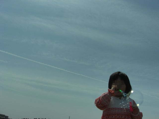 ↑飛行機雲とシャボン玉をするななたん。