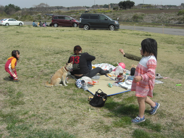 車が止められなきゃどうにもならないし、場所を変えるにも子供達からブーイングが出そうだったので裏に止めて裏の広場にてピクニック開始。