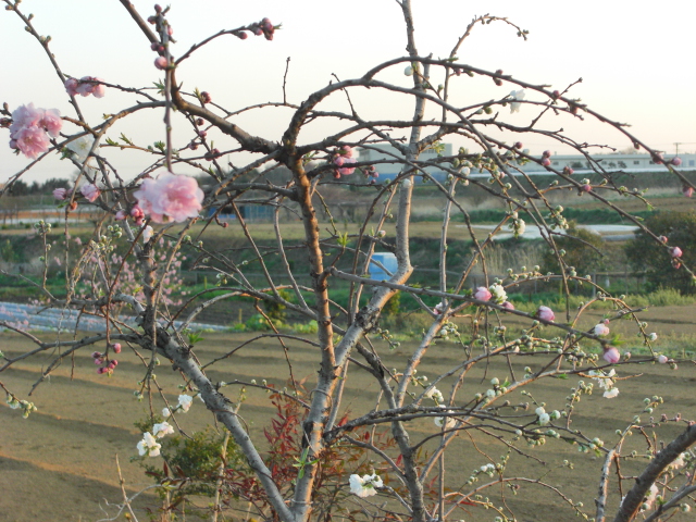 ほいでコチラはちと見難いけど1本の木からピンクと白の花が咲いております。