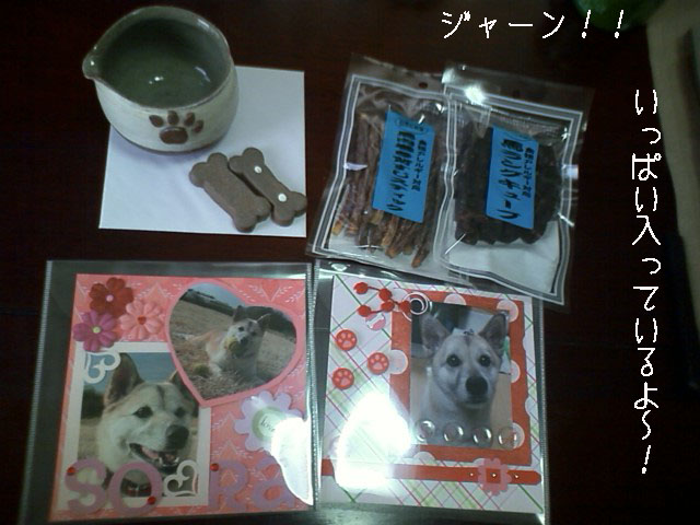 まゆまゆさん手作りのそらの写真で作ってくれたスクラップブッキング・ドレッシングポット・箸置き・おやつ・きゃわいいお手紙でした~。