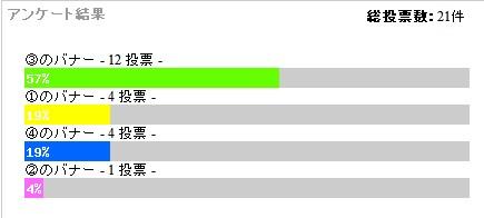 21票中12票という圧倒的な票数で③のこのバナーになりました!