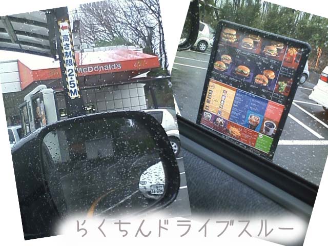 実は買い物しに行ったホームセンターの横にあるショッピングモールにもマックはあったんだけど雨の中歩くのが面倒だったのでちょっと帰り道のルートを変えてドライブスルーってみた(笑)