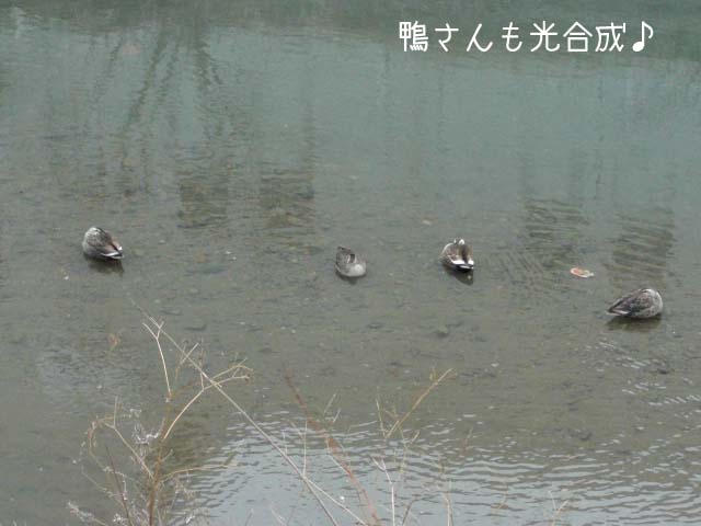 川では鴨さん一家が光合成してました。