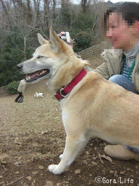 そらはと言うとパパさんがいつも会う度にオヤツをくれるのでオネダリ中。