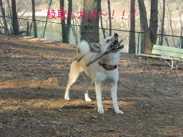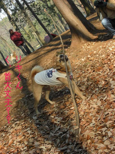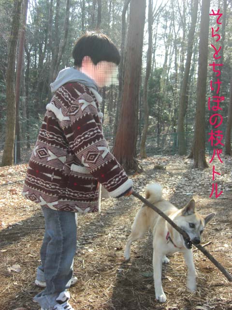 ふと気が付くとリキくん大きな枝と格闘中。