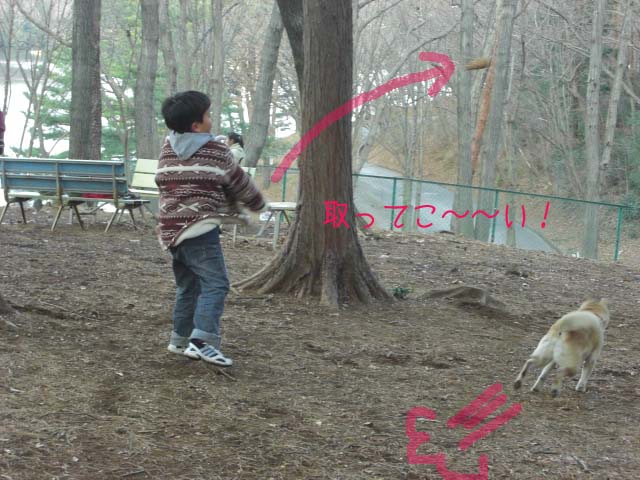 投げた枝を追ってふかふか落ち葉ゾーンへまっしぐら!!