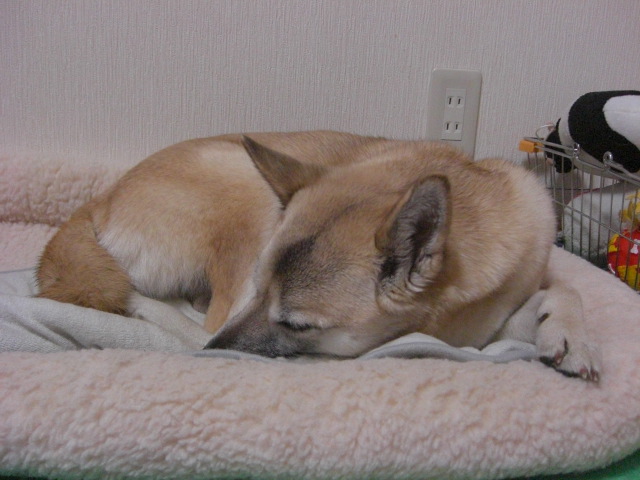 可愛がってくれる父母もいいけどやっぱり自宅よねぇ~と言わんばかりに爆睡!