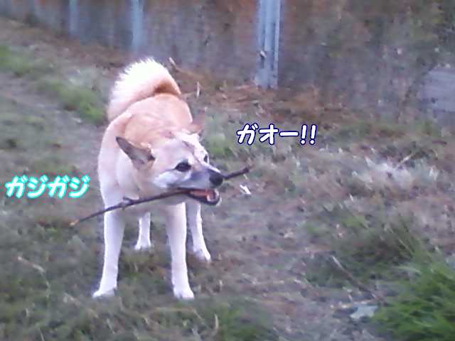 ちょっと前からやってるけど、落ちてる枝を咥えて楽しそうにガオガオしてるんですよ(笑)