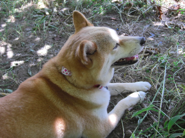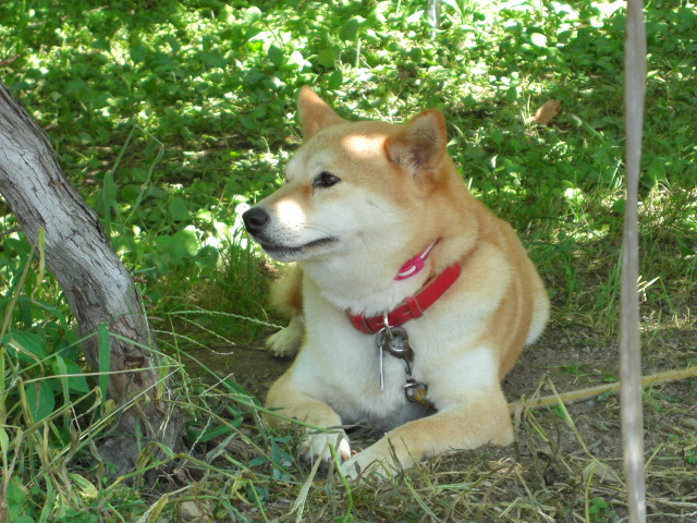 の前に看板犬発見!!(暑いながらも一番涼しい日陰を陣取っていました。)