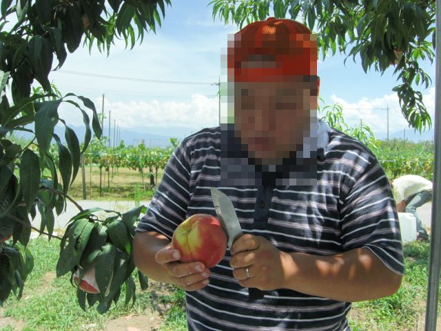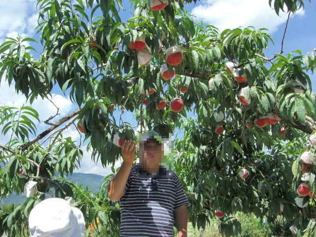 さてさて、お盆休みの真っ只中の8/15 山梨県の中込農園に桃狩りに行ってきました!!