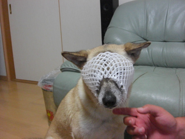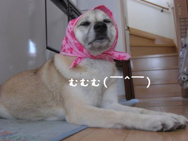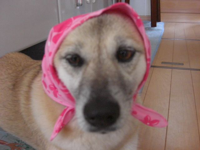 珍しくかぶりものをさせてみました( ̄m ̄〃