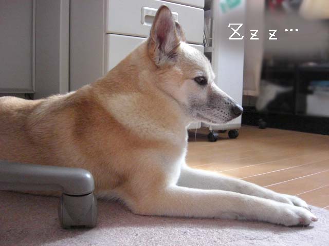 ん~~、結構眠そうだったからもしかして??と思い2階の寝室へ恐る恐る行ってみたところ、見事に予想は的中でこやつちけぽの足元で寝とりました(爆)