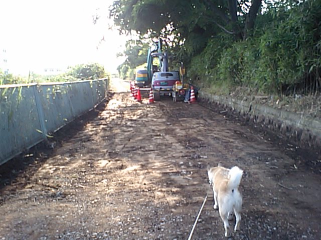 またまた土手の舗装工事が始まりました。