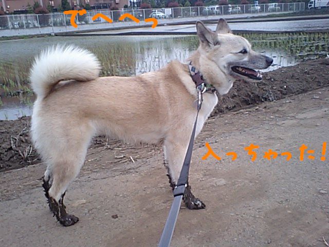 苗を植えたばかりの田んぼに4ツ足ツッコンでいました(-_-;)