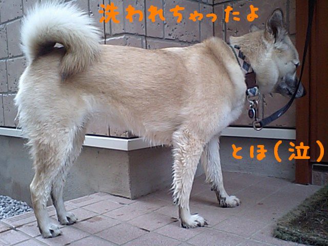 あんなに汚れたら例え外飼いのワンコでも洗われると思うよ。自業自得じゃ!!(笑)