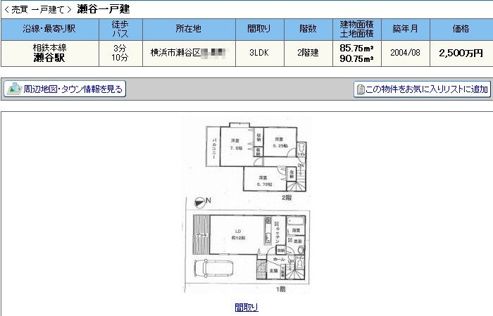 元々この家↑は3000万弱でした。築4年で500万円しか落ちてないんだ~。ふ~ん。