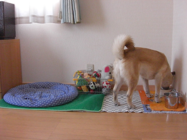 朝も相変わらずトイレに近づきもせず・・・(くまがトイレに誘導するも遠巻きに見るのみ)