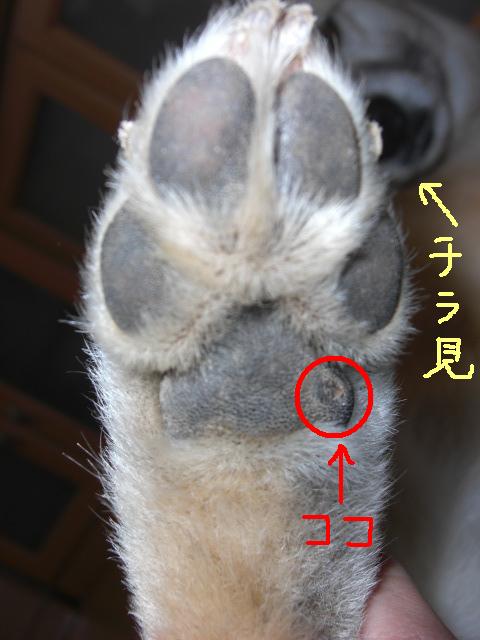 それはそうと、昨日の朝散歩から帰ってきた時にいつも家の外水道で足を洗っているのですが、何を思ったのか足を洗われることに大抵抗してフェンスのネジ部分に右後ろ足をゴーン(本当にそういう音したのよ)とぶつけちょいとパットが壊れ気味に(-_-;)