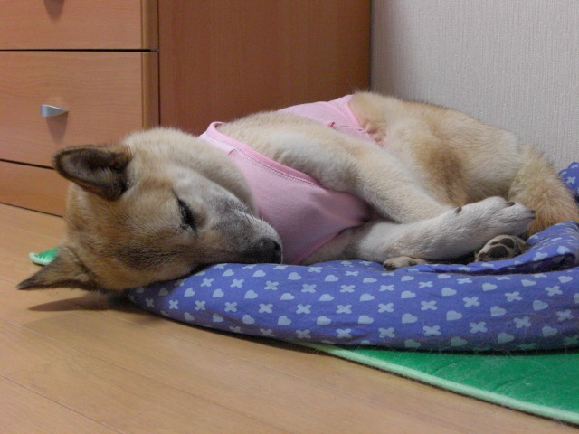 早期に避妊手術してしまった為( 2005/1の生後7ヶ月で)2007/10月に後遺症として尿失禁に。1歳未満で手術した柴犬に多いらしいです。