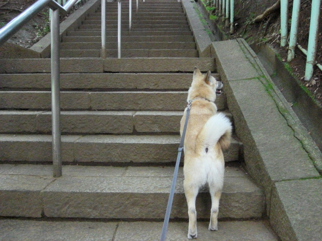 この階段を登りきる途中でA・コッカーとすれ違ったけど、興味を示さず一心不乱に階段を満喫していた模様。