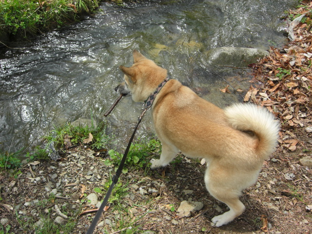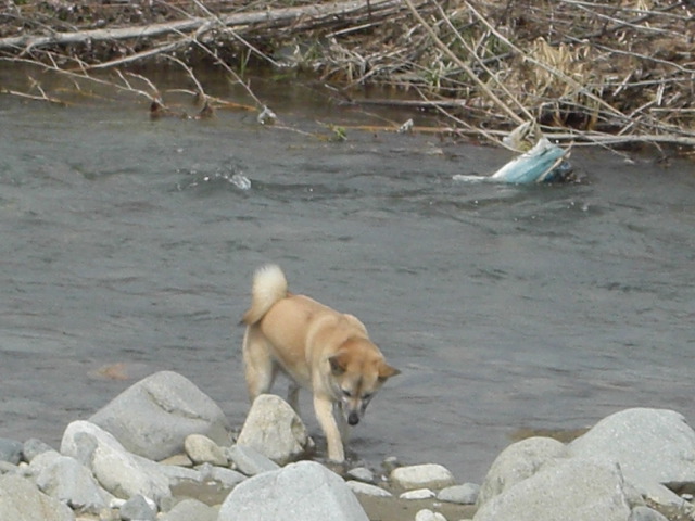 近づいて行ったときに落ちた枝を川の中から無事救出♪