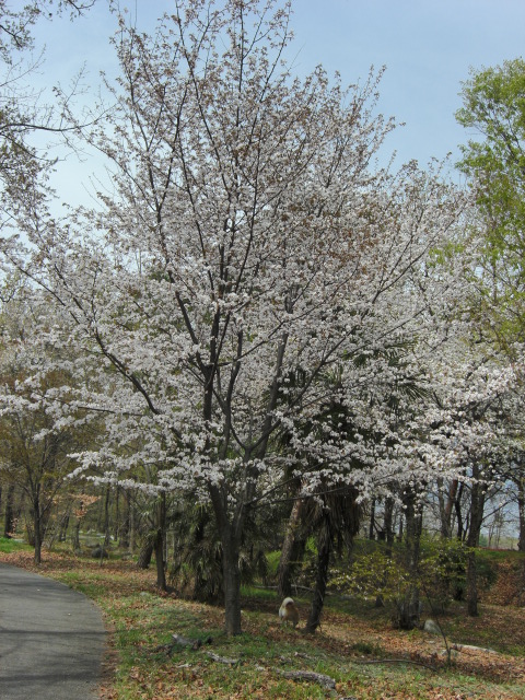 葉が目立つので満開になってもソメイヨシノと比べると見栄えはあまり良くないかなぁ。。