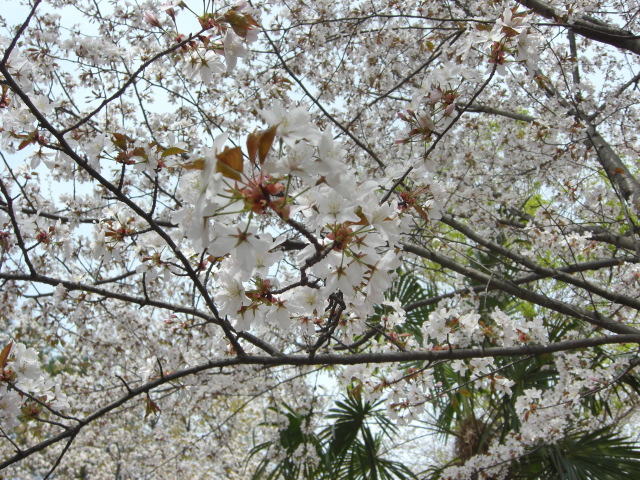 公園の桜は満開でした。