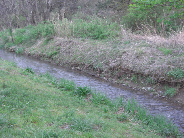 先ほどの小川に比べれば大きいのだけれど上流のほうなので比較的小さめだし浅そう。