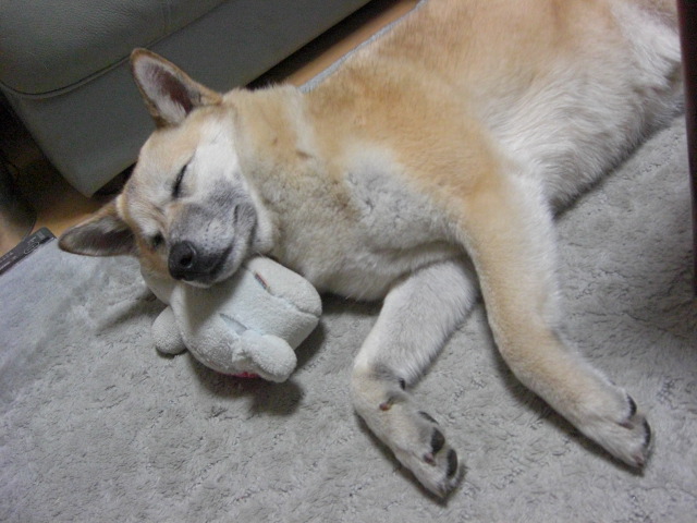 人間の耳にもヒャンヒャン鳴いてる声が聞こえてるから間違いなくそらにも聞こえてるハズなのにこの爆睡加減ったら・・・
