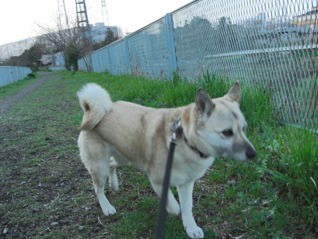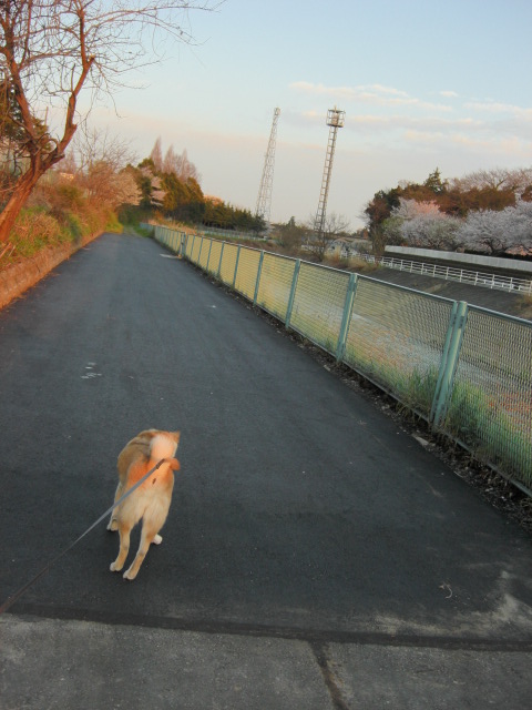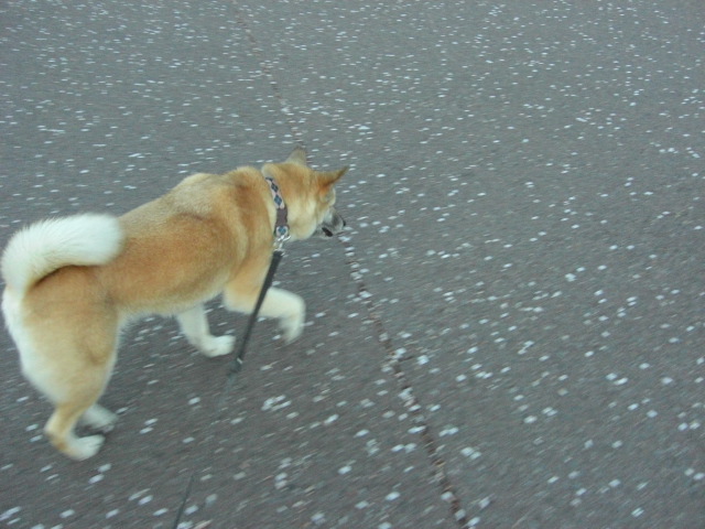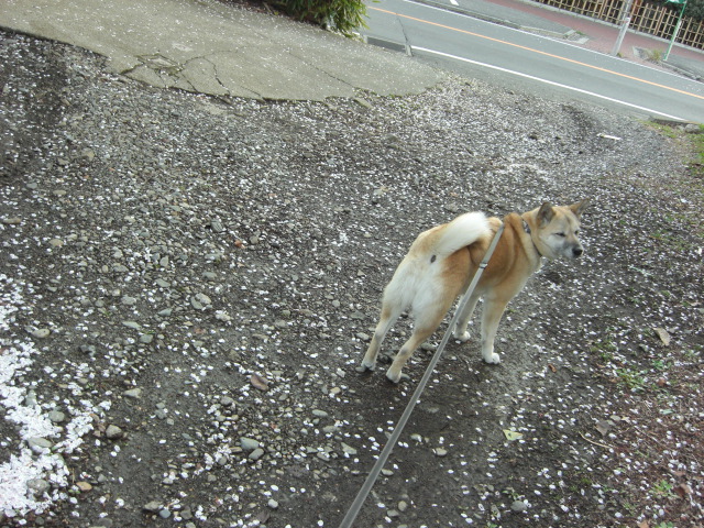 風で舞う花びらを追いかけて遊ぶんだな。これが突然リードを引っ張られるので大変迷惑(-_-;)