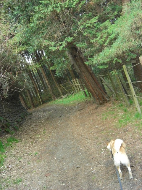 のどかな一本道を下り森へ