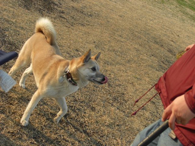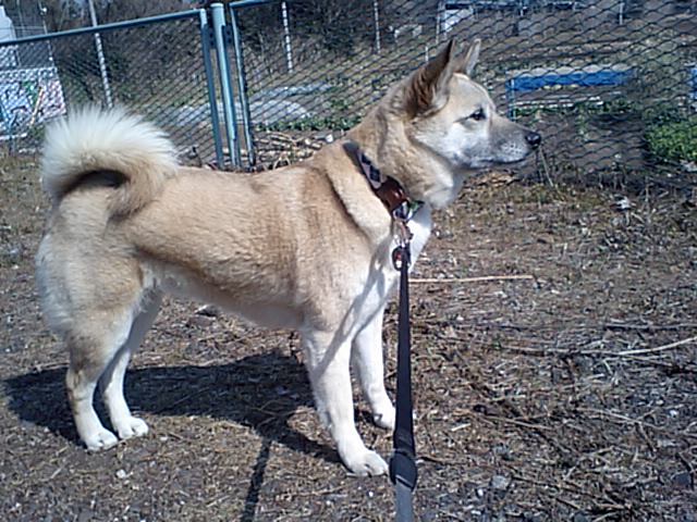 夕方の散歩前に某ホームセンターでそらを洗ったんだけど、尻尾の付け根付近にヘンなクセがついてしまった(汗)