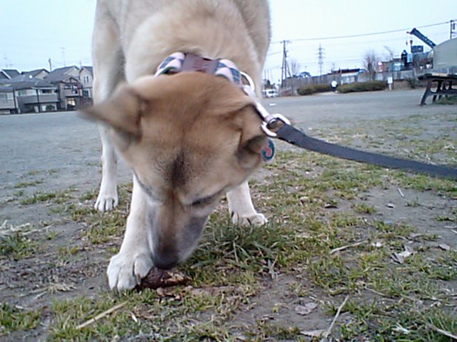 で、今朝から元気のないそらですが昨日は美味しそうにそのサツマイモを公園で食していました。